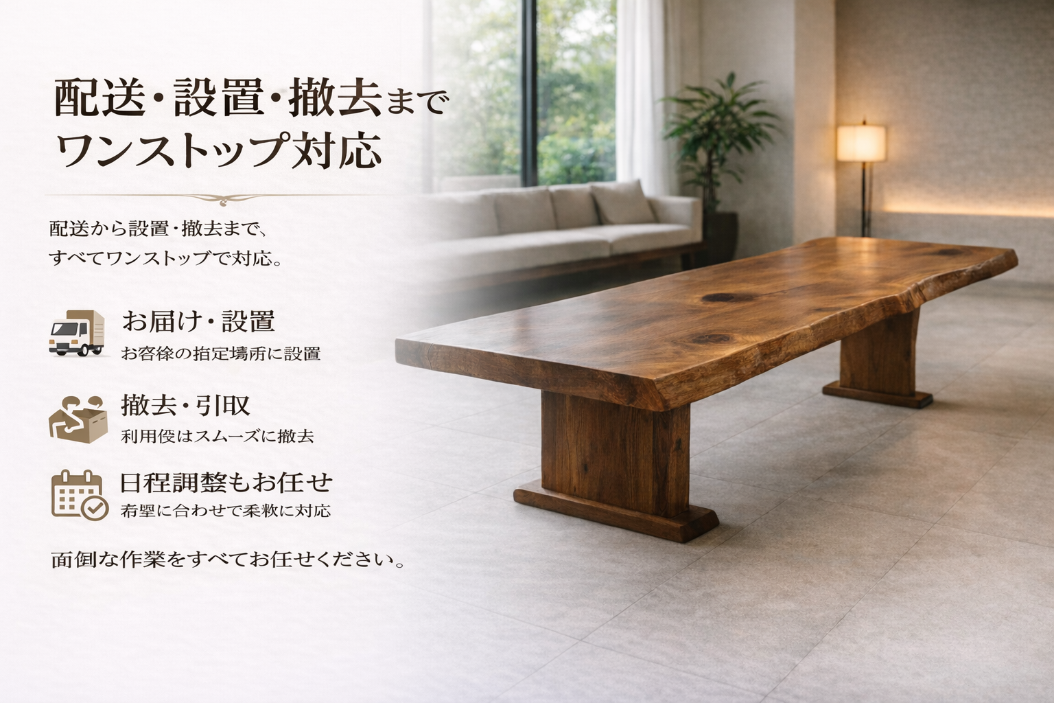 - 対応範囲:配送・設置・撤収までワンストップ対応
