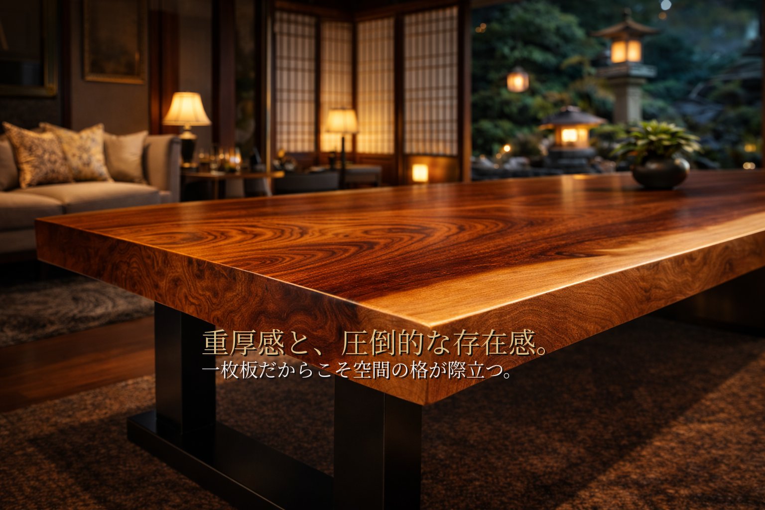 その厚み・重み・うねるような木目に、唯一無二の存在感が宿ります。
